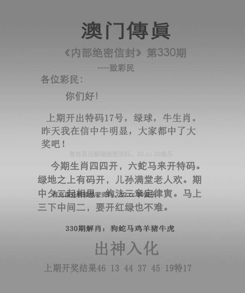 330期:绝杀三肖◢蛇兔牛◣开:马36准